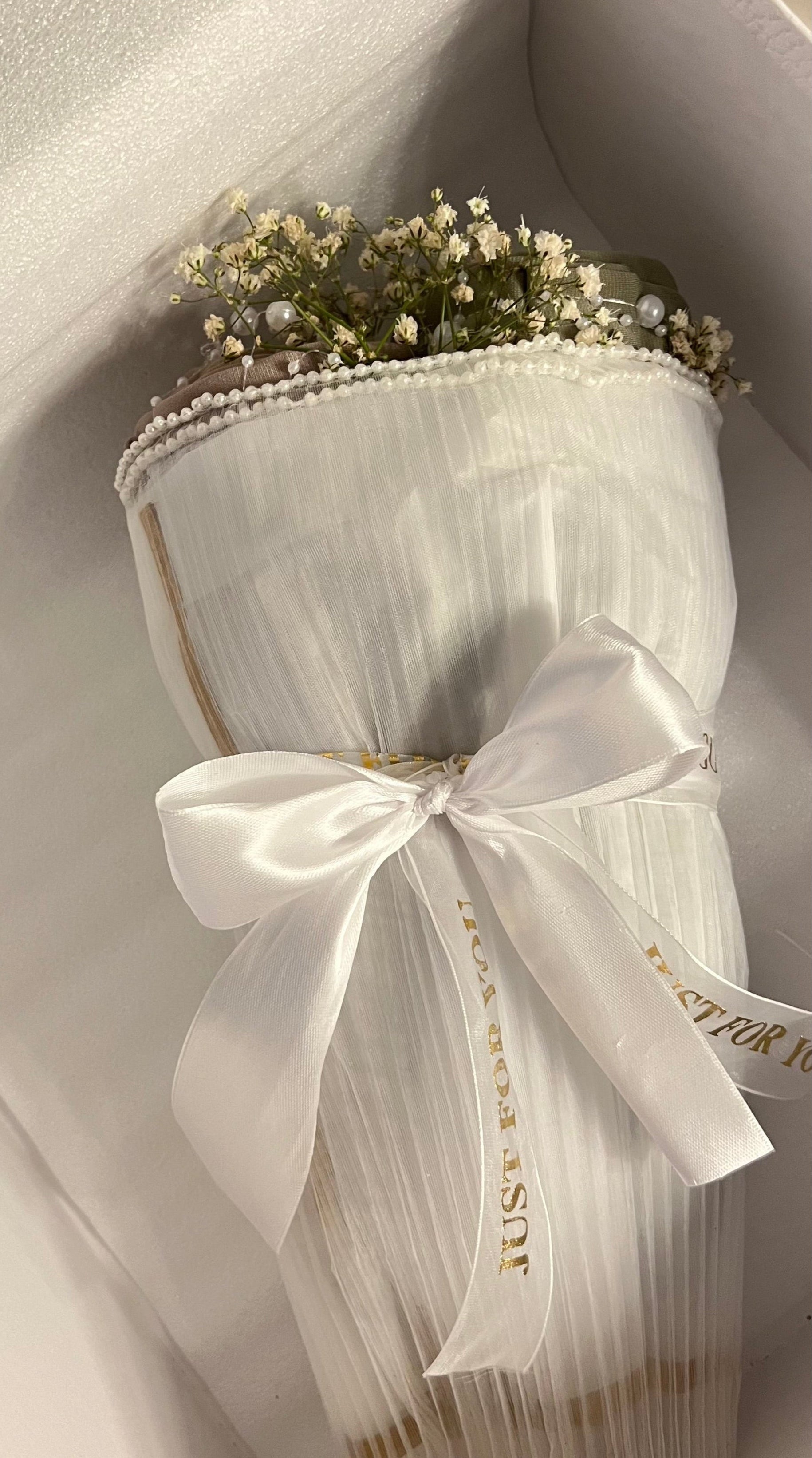 Ce bouquet de voiles est conçu à partir de tulle et de voiles délicatement travaillés.